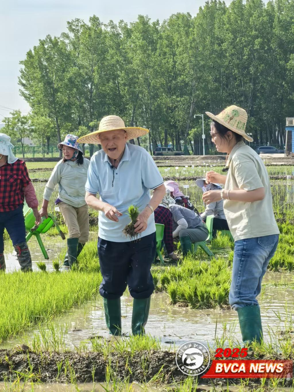 87歲高齡的李增高老師精神矍鑠、耳聰目明,腿腳利索的領(lǐng)著同學(xué)走進(jìn)稻田,一邊示范插秧技巧,一邊詳解秧苗生長(zhǎng)特性。訪談中,他回顧了在青年農(nóng)場(chǎng)扎根田間勞動(dòng)和參與建設(shè)學(xué)校的青春故事,分享了畢業(yè)后深耕水稻育種的奮斗歷程,講述了退休后繼續(xù)傾力投入京西稻研究的感人事跡。無(wú)論是響應(yīng)黨中央做新中國(guó)第一代有文化的農(nóng)民的號(hào)召,還是60多年始終如一的躬耕水稻研究,他用一輩子的實(shí)際行動(dòng)詮釋了愛(ài)黨報(bào)國(guó)、無(wú)私奉獻(xiàn)的理想信念,讓師生們深受觸動(dòng),不僅近距離感受到了老一輩農(nóng)職人的奮斗精神,更從其豐富經(jīng)歷中汲取到寶貴的精神財(cái)富與人生智慧。采訪結(jié)束時(shí),李老師還殷切囑托同學(xué)們要樹(shù)立遠(yuǎn)大的理想,永葆奉獻(xiàn)精神。