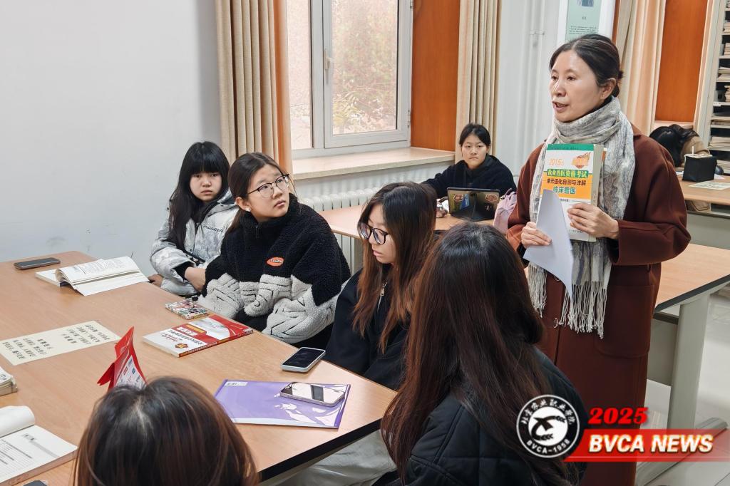 活動中,周珍輝結合新生專業特點及未來發展方向,聚焦全國執業獸醫資格考試,引導學生從相關考證書籍入手規劃業余學習。她帶領學生共讀執業獸醫資格考證書籍,詳細介紹各類備考書籍的特點,并給出針對性選書建議,助力學生精準對接考試需求。