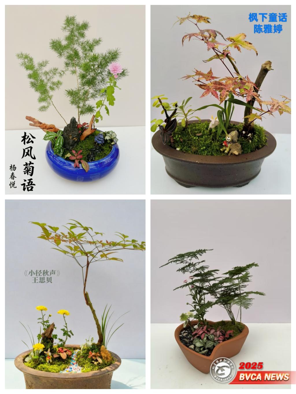 本次成果展的作品源自園林系劉旭富老師《花卉與生產(chǎn)應(yīng)用技術(shù)》課程的教學(xué)成果,以及創(chuàng)業(yè)學(xué)生小組的創(chuàng)新實(shí)踐。以菊花、米竹、南天竹、觀賞石、菖蒲等自然素材,融入中國(guó)傳統(tǒng)插花、盆景藝術(shù)手法,充分展現(xiàn)了學(xué)生們?cè)谡?、修剪、造型等環(huán)節(jié)的想象力和創(chuàng)造力。學(xué)生創(chuàng)業(yè)小組同步組織了插花體驗(yàn)及菊花征名活動(dòng)。