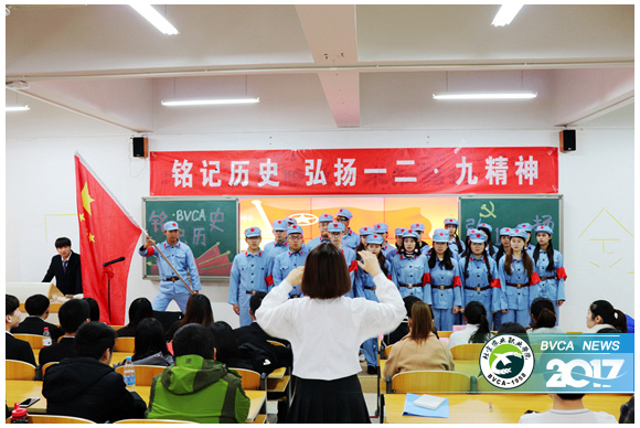 會計1611全班列隊喊番號,其參賽歌曲《當那一天來臨》展現了中國人民解放軍英姿颯爽、英勇向前的革命精神。合唱結束后,播放了班級制作的視頻短片,表達了對本班正在服兵役同學的祝福和期望。法律1611班的《新編紅歌》中,將《打靶歸來》、《萬泉河水》、《歌唱祖國》串聯在一起,通過體現年代感的服裝和洪亮的歌聲,展示了濃濃的愛國情。金融1611班的合唱《沒有共產黨就沒有新中國》,將朗誦和合唱完美結合,用激昂的語句迸發出磅礴的氣勢,用洪亮的歌聲渲染了人民群眾對共產黨真誠的熱愛。金融1612班的《國家》,將男女生對唱和集體合唱相結合,唱出了中國青年對祖國未來美好期待,合唱中間又穿插了手語表演,創新了演繹形式。會計1714班的同學們著裝整齊,一曲《黃河大合唱》展現了中國人民堅強不屈的奮斗精神。會計1613班人數少,但卻通過一首《國家》向全場展示了國的強大與家的祥和。活動過程中穿插了兩次12·9運動相關知識的有獎問答,同學們踴躍參加,現場氣氛活躍,為本班增光添彩,最后合唱比賽在團總支成員朗誦的《時代在召喚》中落下帷幕。
