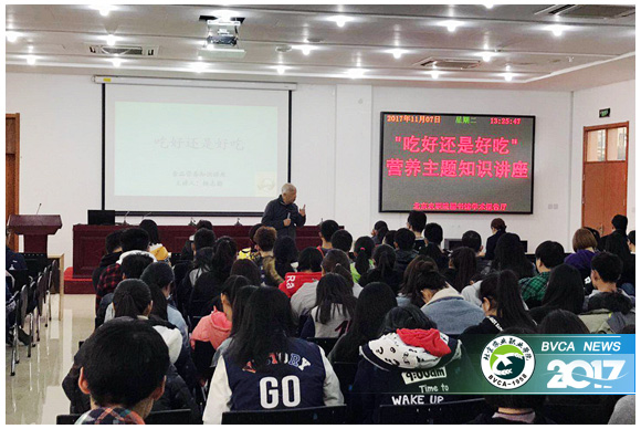 活動旨在宣傳、普及食品營養安全知識,提高師生的飲食安全意識,從而更合理地選購、消費食品。應邀擔任活動主講的楊志勛先生是我國著名軟科學專家,著名中醫,北京市政府顧問,北京世紀楊氏新藥管療法研究所所長。楊老出身中醫世家,他從中國傳統道教的養生觀念講起,談到現代人對養生的認識發生了偏差,從而引出在這個全民養生的當下為什么大家生病的種類會越來越多,原因不在于吃什么而是在于生活壓力越來越大,作息時間不規律,違背了身體的正常運作。楊老強調,你可能覺得早上不吃一頓飯沒有關系,但是我們身體的膽汁必須是進食后才能夠分泌出來,膽正常分泌膽汁才能預防膽結石?,F在學生最愛聚會喝啤酒,但喝了啤酒最容易脹氣,對自己的腸胃有影響等。楊老樸實的語言、通俗的講解吸引了現場所有師生的注意力。在互動環節,大家紛紛提問,楊老一一解答,向大家傳授了日常疾病的鍛煉治療法,比如:濕疹的治療方法甩五蹲一彈五、糖尿病的根治方法是化糖,每天走十公里的效果是吃降糖藥的十倍等。講座結束時,楊老還鼓勵同學們認真學習專業知識,利用假期多進行社會實踐,培養實踐能力,共同構筑健康生活。