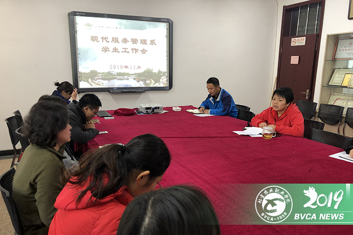 11月26日,現代服務管理系召開學生工作會議,系黨總支書記陳麗清、學生工作辦公室人員和一、二年級班主任老師參加會議。