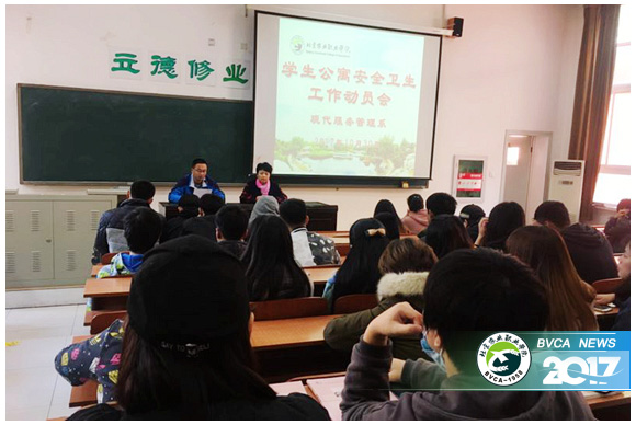 10月30日中午,現代服務管理系召開學生公寓安全衛生工作動員會。系黨總支書記陳麗清、學辦人員以及全系學生參加會議。