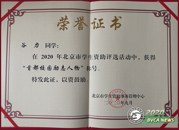 9月25日下午,“助學圓夢育新人 決戰決勝譜新篇”2020年北京市學生資助評選活動頒獎典禮在北京市少年宮劇場舉行,對“首都校園勵志人物”“首都資助育人優秀工作者”和“首都學生資助推薦學習個人”等進行隆重表彰。我院北苑校區谷力同學榮獲“首都校園勵志人物”、園藝系學生工作辦公室主任趙鋼榮獲“首都學生資助推薦學習個人”榮譽稱號。