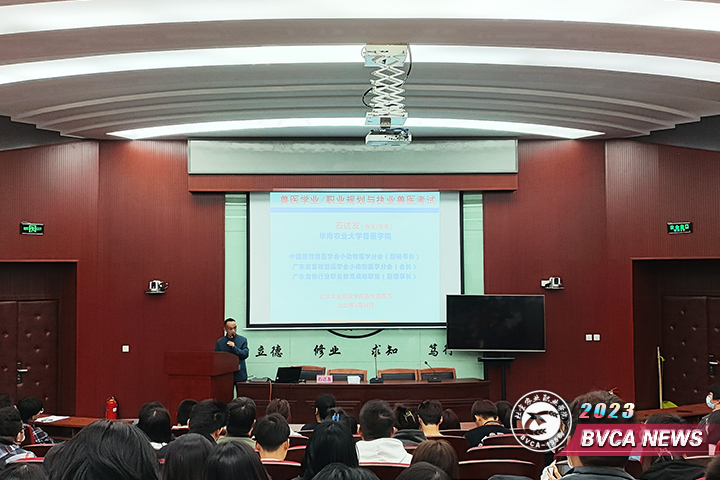 石達(dá)友教授就職業(yè)生涯規(guī)劃和執(zhí)業(yè)獸醫(yī)師考試與同學(xué)們進(jìn)行分享,激情澎湃地介紹了專業(yè)就業(yè)前景、在校生考取執(zhí)業(yè)獸醫(yī)師的重要意義、復(fù)習(xí)方法、報(bào)考技巧等。