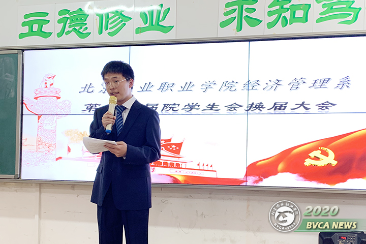 第十六屆系學生會副主席羅文軒代表上一屆學生干部進行工作總結;系學辦主任宣布對第十六屆優秀團、學干部及對系學生會工作有突出貢獻的學生個人進行了表彰;宣布了第十七屆經濟管理系團總支、第十七屆經濟管理系學生會成員名單;第十七屆系學生會執行主席劉泳呈代表新一屆學生干部發言。
