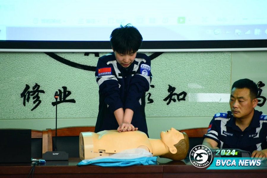 隨后,房山區(qū)星光救援隊(duì)的成員向大家示范講解了心肺復(fù)蘇的操作方法。在救援隊(duì)員的現(xiàn)場(chǎng)指導(dǎo)下,學(xué)生使用假人進(jìn)行實(shí)操急救技巧。