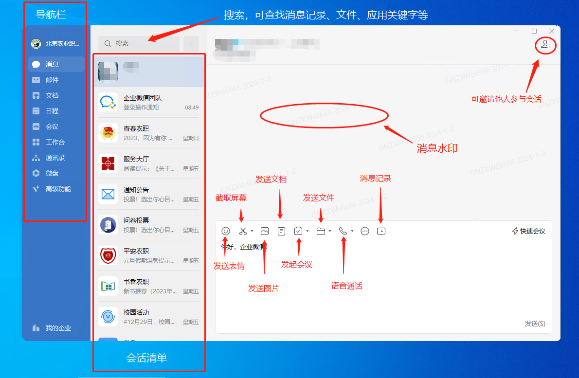 企業微信(電腦端)界面說明