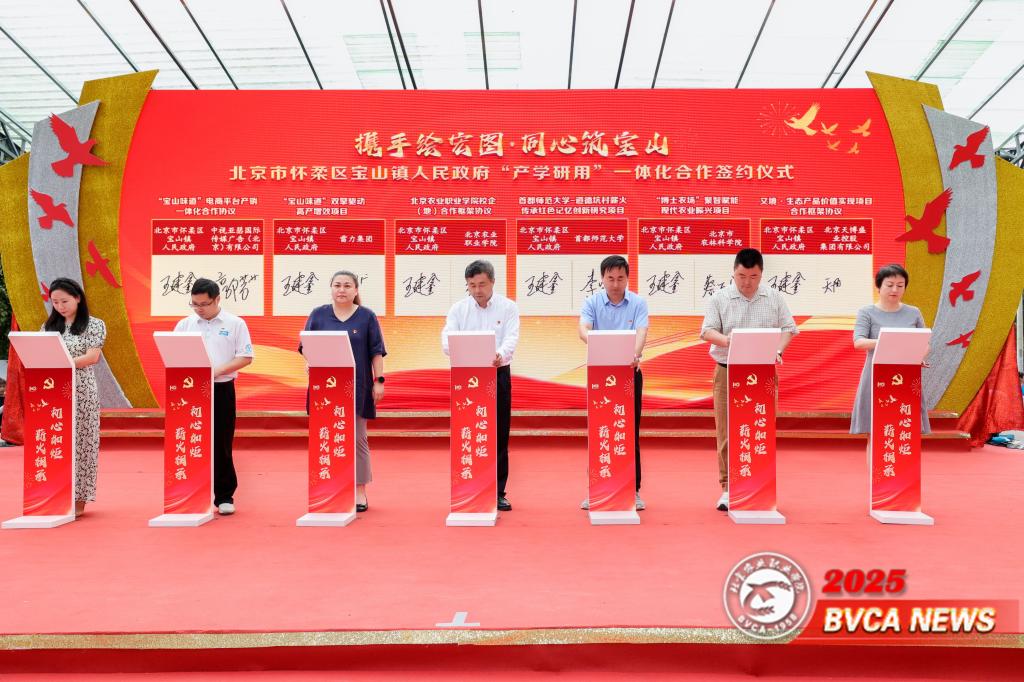 校地合作簽約儀式上。我院聯合首都師范大學、北京市農林科學院等5家單位與懷柔區寶山鎮簽署戰略合作協議。根據協議內容,學院將重點圍繞數字農業、電商助農、技術推廣和人才培養等領域與寶山鎮開展深度合作,共同探索“合作聯動、雙向賦能”的鄉村振興新路徑,助力寶山鎮打造“產學研用”融合典型案例。農業農村發展系教師陳蘭、車紅莉、趙鑫帶領學生團隊參加活動,實地考察合作項目。