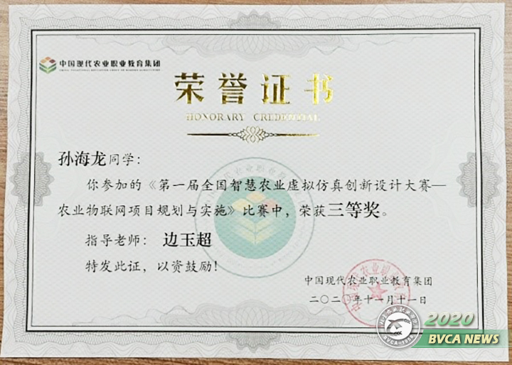 11月1日,我院信息技術(shù)系邊玉超、解菁兩位老師指導(dǎo)物聯(lián)1811班19名學(xué)生參加了“2020年第一屆全國智慧農(nóng)業(yè)虛擬仿真創(chuàng)新設(shè)計大賽-農(nóng)業(yè)物聯(lián)網(wǎng)項目規(guī)劃與實施”賽項。其中,梁瑞涵、孫海龍同學(xué)分別獲得二等獎和三等獎。