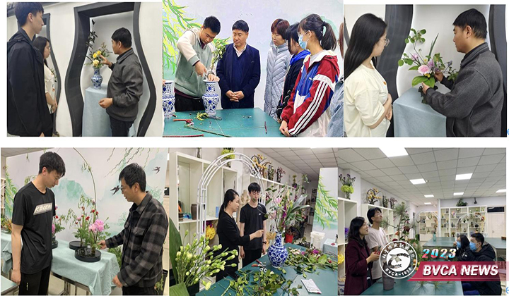 鄭志勇,周博,郭宇林三位專業教師帶領“花研學社”社團的王若涵、宋慧敏、張婧雨、楊國斌四位同學,多次前往蘭展活動場地觀看展位大小,商討確定制作作品為中國傳統插花的六大類作品——盤花、瓶花、缸花、碗花、籃花、筒花,并選用商代晚期青銅禮器造型四羊方尊作為容器之一,以弘揚中國傳統文化。