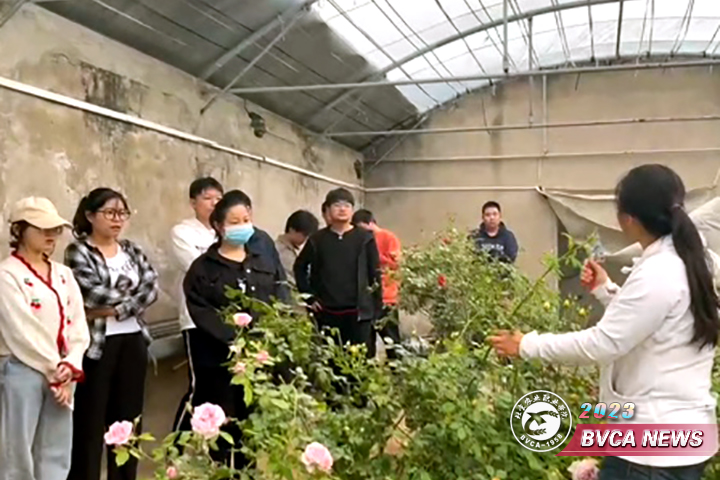 為保證展覽期間作品的觀賞期時長和維護低頻次,同時還能展示專業課程成果,在花材選擇上,選用了園藝2111班在《花卉生產與應用》課程中利用花期調控技術催花生產的切花月季“天秤座”“柴可夫斯基”“藍色天空”“紫荷”“智慧女神”,確保在展品練習與制作中的花材供給。