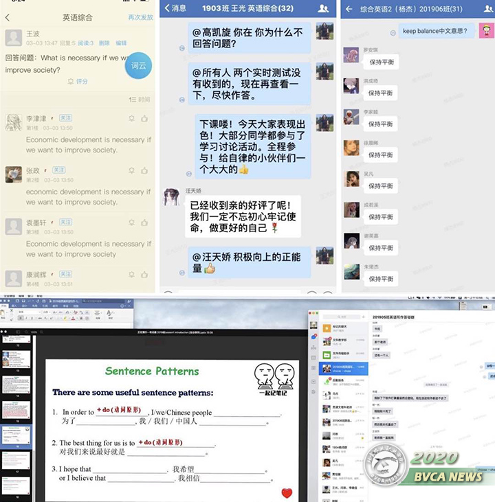 按照學院“停課不停教、停課不停學”的工作部署,根據北苑校區(國際教育學院)的教學工作要求,文科教學部主任馬杰提出線上教學必須要做到易學習、有重點、保質量,文科教學部的英語教師們積極投入到線上英語教學工作中。