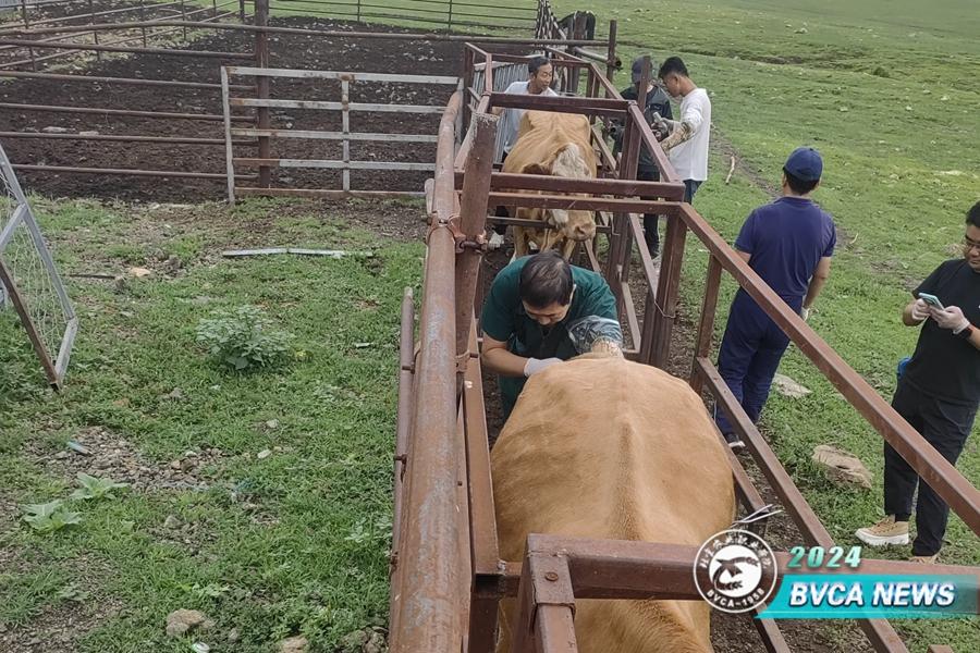 在此次活動中,專家們展現了高超的專業技能和無私的奉獻精神,共處理了70頭胚胎移植供體牛和受體牛,通過精細的同期發情調控、高效的胚胎生產技術以及精準的胚胎移植操作,成功實現了純種肉牛的繁育目標。更為重要的是,專家團隊親自指導并培訓了8名當地的技術人員,確保這項技術能夠在未來得到持續推廣和應用。這一舉措不僅為烏蘭達壩村萬頭肉牛養殖以及巴林左旗整體15萬頭肉牛的選種選育工作奠定了堅實基礎,更為當地畜牧業的長遠發展提供了有力支撐。