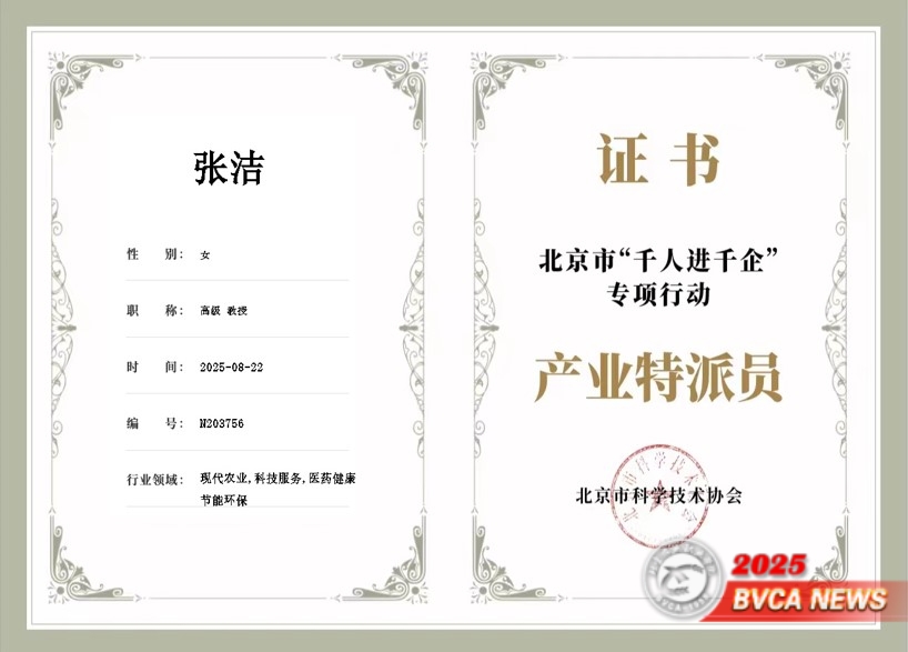 2025年8月,我校動物科技學院教授張潔入選北京市科協“千人進千企”專項行動產業特派員。該活動是北京市科協為落實《北京市關于實施“三大工程”進一步支持和服務高新技術企業發展的若干措施(京政辦發〔2022〕19號)》的重要舉措。旨在通過科協組織人才優勢,構建“需求對接+資源供給”的雙向服務模式,推動科技成果轉化與企業技術升級。