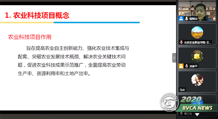 為提高教師科研能力,促進(jìn)學(xué)院科技發(fā)展,服務(wù)鄉(xiāng)村振興戰(zhàn)略,11月13日,科研處舉辦線上學(xué)術(shù)交流活動(dòng),特邀北京市農(nóng)業(yè)農(nóng)村局程曉仙總農(nóng)藝師做農(nóng)業(yè)科技項(xiàng)目申報(bào)專題講座,學(xué)院專業(yè)技術(shù)人員近百人聆聽報(bào)告。
