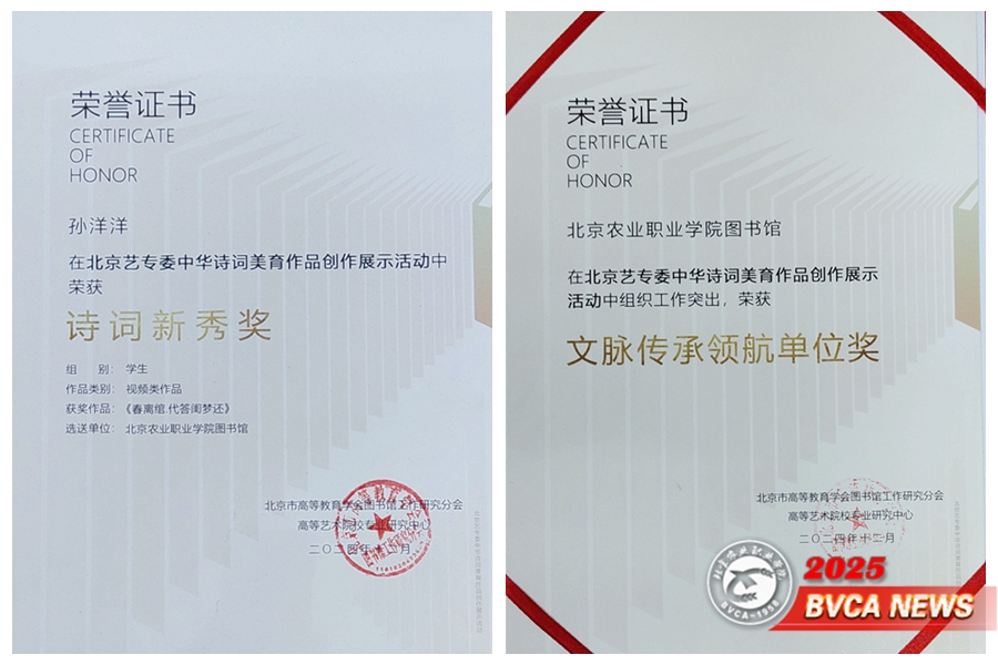 近日,中華詩詞美育作品創作展示活動結果公布。我校園藝園林學院園林2412 班孫洋洋同學的視頻作品《春離綰.代答閨夢還》,獲“詩詞新秀獎”;學校圖書館榮獲 “文脈傳承領航單位獎”。