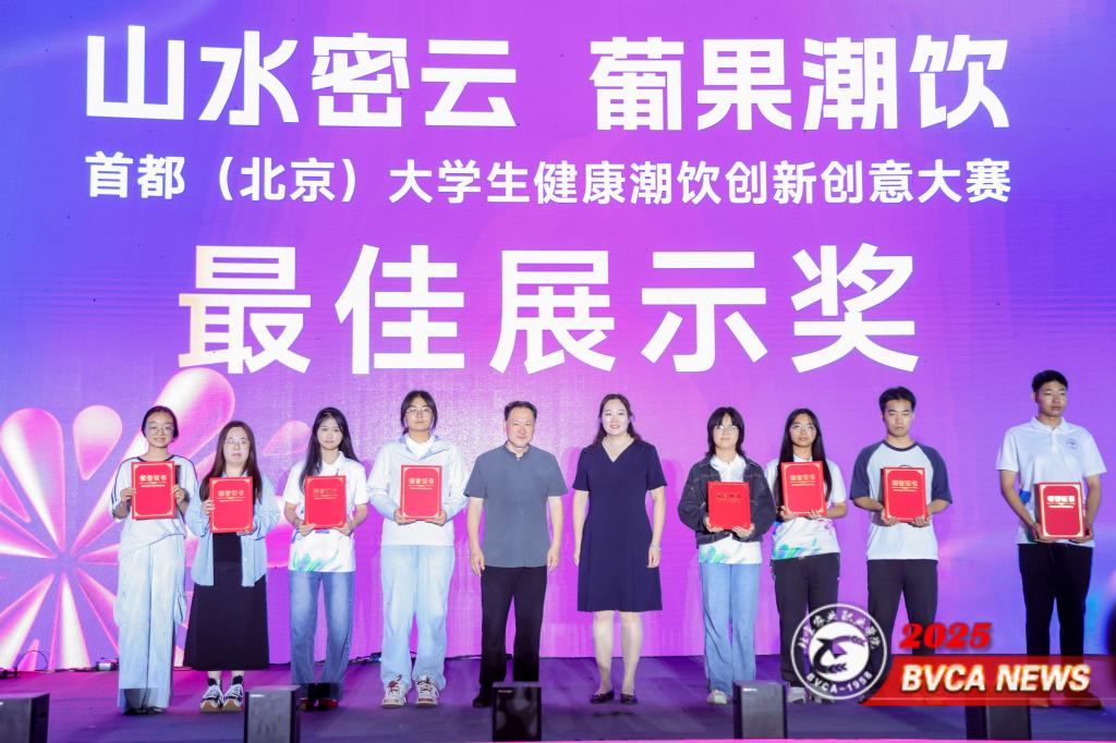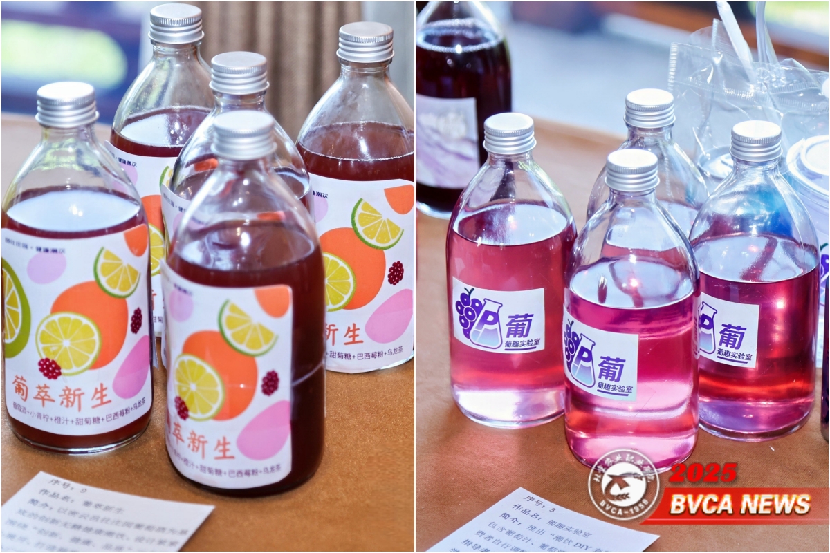 本次大賽由北京林業大學承辦,我校楊新建副院長與汪長鋼老師全程協調組織。參賽團隊以密云葡萄酒為基底,融入低糖、益生菌、功能果粉等健康元素,調制出《葡趣實驗室》、《葡萃新生》兩款創意潮飲,贏得評委與觀眾點贊。