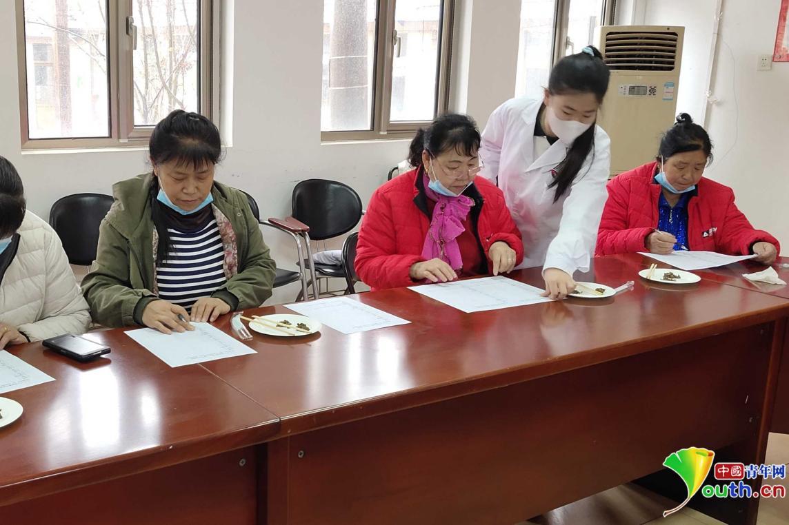孟雨晴(右二)邀請村民品嘗經過精細化加工的香椿。本人供圖