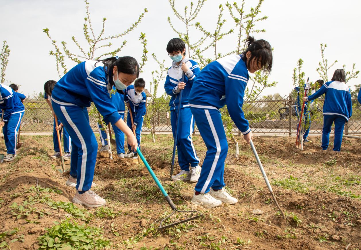 在程建軍的指導(dǎo)下,學生們紛紛揮鍬上陣,不一會兒,一排排淺坑便挖好了。“常聽家里長輩講年輕時干農(nóng)活的故事,但我卻從來都沒摸過鐵鍬、種過地。這次體驗農(nóng)民伯伯的日常耕作,感覺特別有意義!”學生張翯和同學按照步驟分工協(xié)作,往淺坑里鋪上一層糞肥和樹葉雜草,再培上一層土,用鐵鍬輕輕攪拌拍平。大家盡管忙得滿頭大汗,卻干得起勁兒。