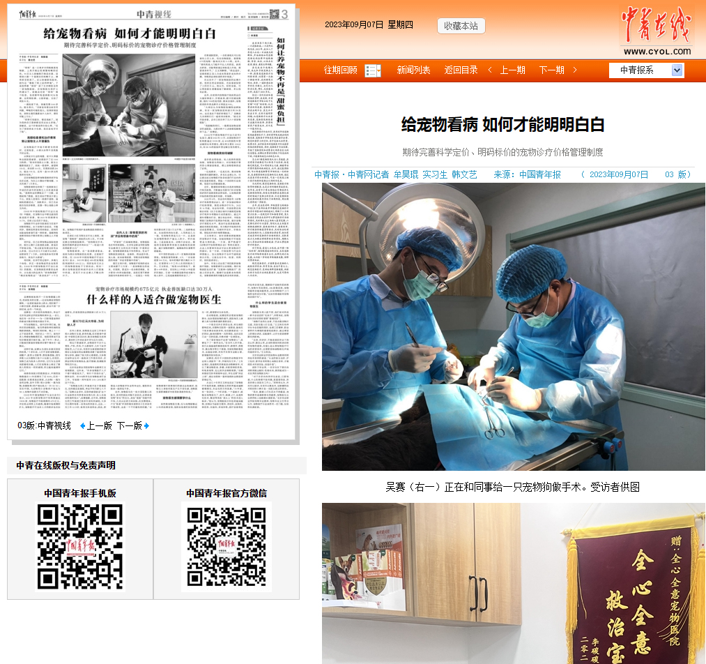 根據(jù)年初對(duì)學(xué)院畜牧獸醫(yī)系師生的采訪,9月7日《中國(guó)青年報(bào)》整版刊發(fā)了寵物醫(yī)生系列通訊,稿件同時(shí)在中國(guó)青年報(bào)新媒體客戶端發(fā)布。