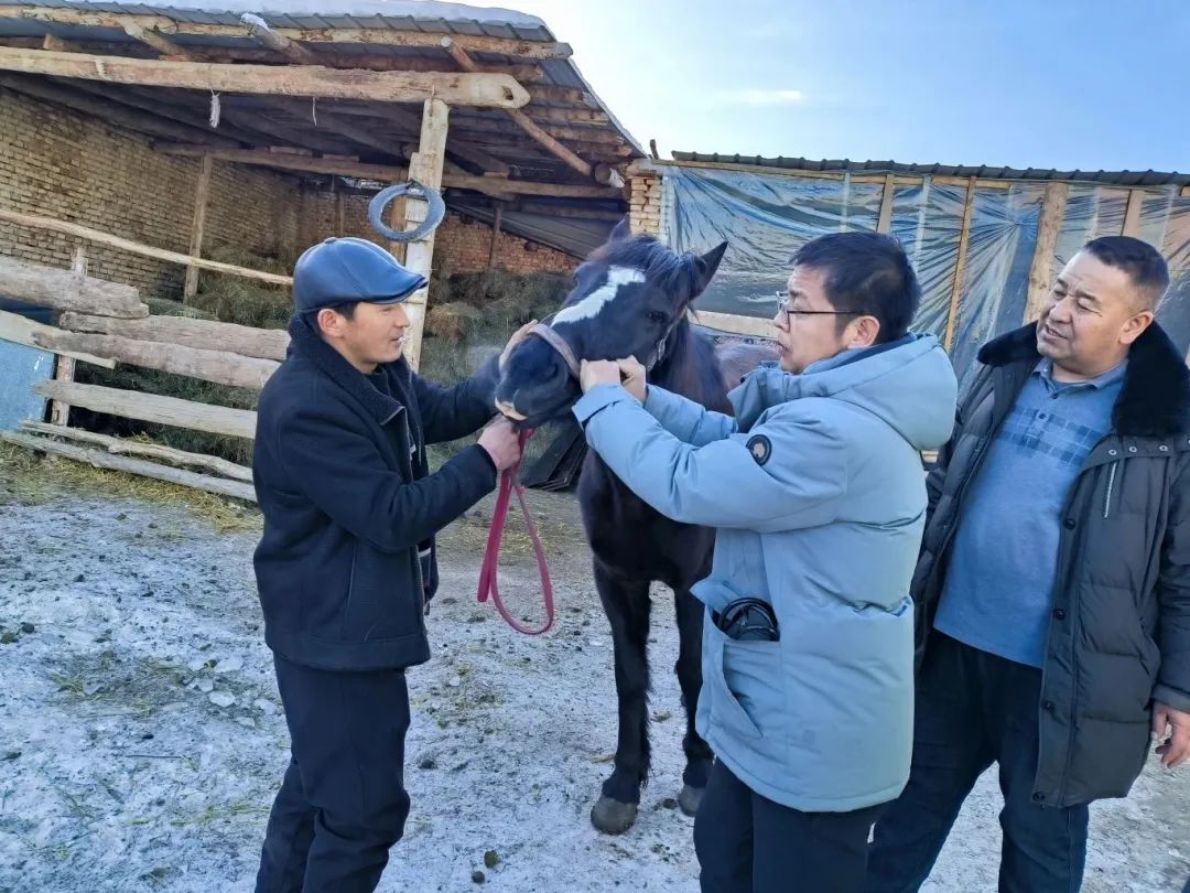 1月29日,在昭蘇縣阿克達拉鎮(zhèn)塔勒德薩依二村,村民努爾達吾列提·努爾沙哈特高興地牽出一匹受傷的賽馬,請來自北京農業(yè)職業(yè)學院動物科技學院專家診治。參加畜牧業(yè)科技培訓的50余名學員觀摩了整個診治過程。這是昭蘇縣舉辦的2023-2024年度科技之冬畜牧業(yè)科技培訓第9天,期間,2位專家?guī)е鴮W員們到全縣10個鄉(xiāng)鎮(zhèn)場開展馬病入戶義診活動。