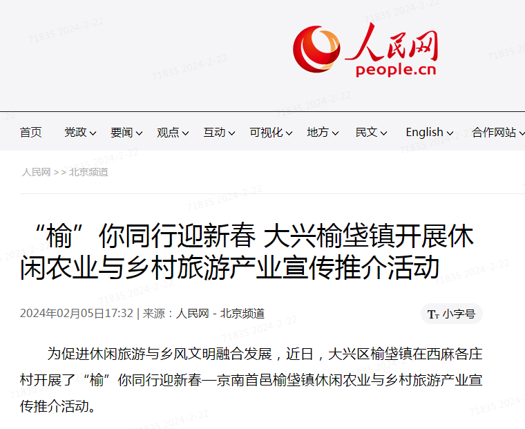 為促進休閑旅游與鄉風文明融合發展,近日,大興區榆垡鎮在西麻各莊村開展了“榆”你同行迎新春—京南首邑榆垡鎮休閑農業與鄉村旅游產業宣傳推介活動。