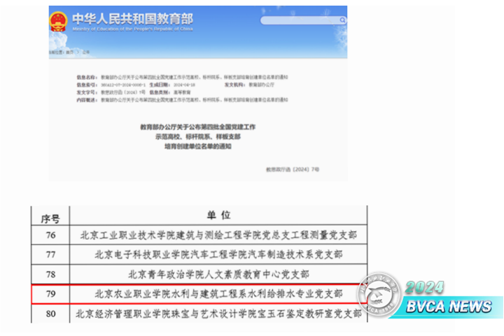 近日,教育部辦公廳公布了第四批全國(guó)黨建工作示范高校、標(biāo)桿院系、樣板支部培育創(chuàng)建單位名單。我校國(guó)家級(jí)黨建“雙創(chuàng)”工作取得重大成果,水利工程系黨支部(水利給排水專(zhuān)業(yè)黨支部)成功入選第四批“全國(guó)黨建工作樣板支部”培育創(chuàng)建單位。