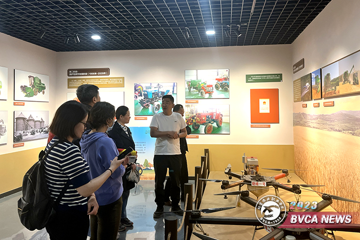 活動中,師生首先進入北京農耕文化體驗館進行參觀。農耕文化館詳細展示了農耕與二十四節氣的關系、農機具的演變和發展。師生詳細聆聽了講解員從原始農業的刀耕火種到現代農業生產工具演變、主要農機具在不同時期其基本原理與創新,以及現代農機、智能裝備對于農業生產重要性的講解,大家進一步認識到農機裝備在現代農業生產中的重要作用。