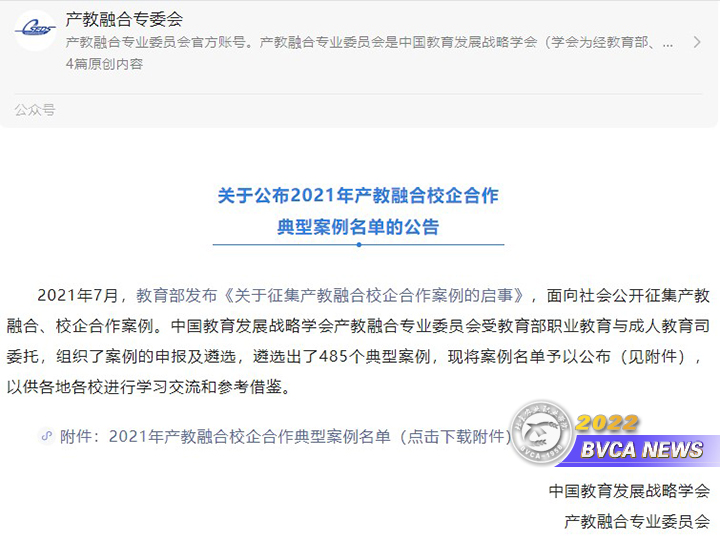 近日,中國教育發(fā)展戰(zhàn)略學會發(fā)布《關于公布2021年產教融合校企合作典型案例名單的公告》,學院報送的《共建耕讀育人平臺 開展農科雙元育人》《校企“雙主體”工學交替培養(yǎng)高素質管理人才》兩篇案例成功入選教育部2021年產教融合典型案例名單。