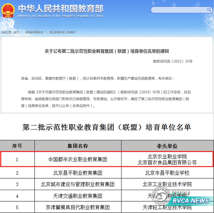近日,教育部公布全國第二批示范性職業(yè)教育集團(聯盟)名單,學院和北京首農食品集團有限公司牽頭成立的中國都市農業(yè)職業(yè)教育集團成功入選。