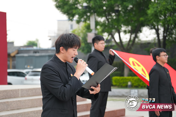 參加團日活動的學生們身著五四運動期間的青年服裝,各系部/校區團干部統一著正裝,在紀念館前集體緬懷革命先烈。師生們面向“盧溝醒獅”雕塑肅穆而立,默哀、鞠躬,以簡樸而虔誠的方式,表達對革命先烈的感恩懷念。團干部代表畜牧獸醫系寵物2112班李慶陽同學發表團旗下的演講,號召農職青年牢記習近平總書記的殷切囑托,珍惜大學時光,認真學習科學文化知識、苦練實踐技術本領,加強道德修養,錘煉意志品格,立志做有理想、敢擔當、能吃苦、肯奮斗的新時代好青年。