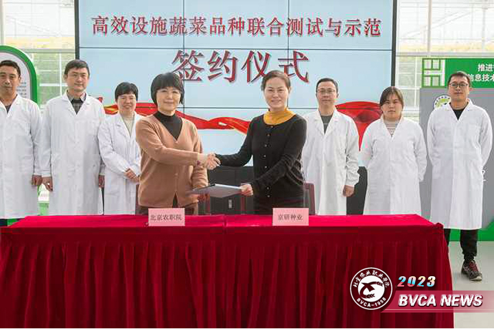 2月3日上午,學院與京研益農(北京)種業科技有限公司(簡稱京研種業)簽署了“高效設施蔬菜品種聯合測試與示范”合作協議并舉辦簽約儀式,同時交付了聯合測試蔬菜品種。京研種業副總經理丁海鳳研究員、農科院蔬菜所王寶駒副研究員、實驗實訓中心主任李志蓮及相關負責人員參加了簽約儀式。