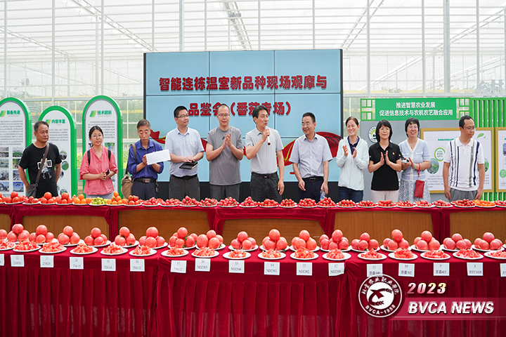 6月20日,學院現代化智能溫室室內設施蔬菜新品種現場觀摩與品鑒會(番茄專場)活動成功舉辦。學院副院長程文華、京研種業副總經理丁海鳳研究員、農科院蔬菜所王寶駒副研究員出席,實驗實訓中心及園藝系相關人員、科研院校專家、種植戶代表參加。