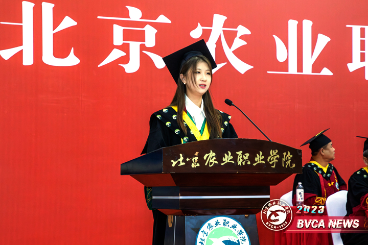 剛剛從北京農學院研究生畢業、獲得北京市優秀碩士畢業生,即將踏上博士求學路的校友代表、2018屆優秀畢業生陳暢同學發言。陳暢同學分享了自己的經歷和感悟。希望學弟、學妹們能夠堅持學習,把良好的學習能力轉化為核心競爭力,把人生追求的“個人夢”融入到民族復興的“中國夢”中去!