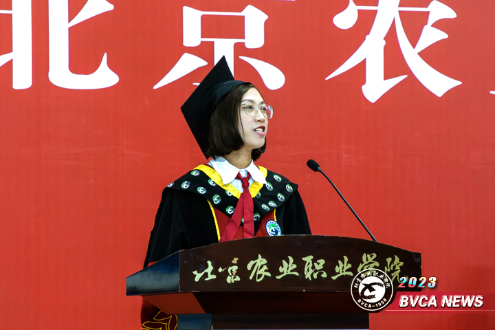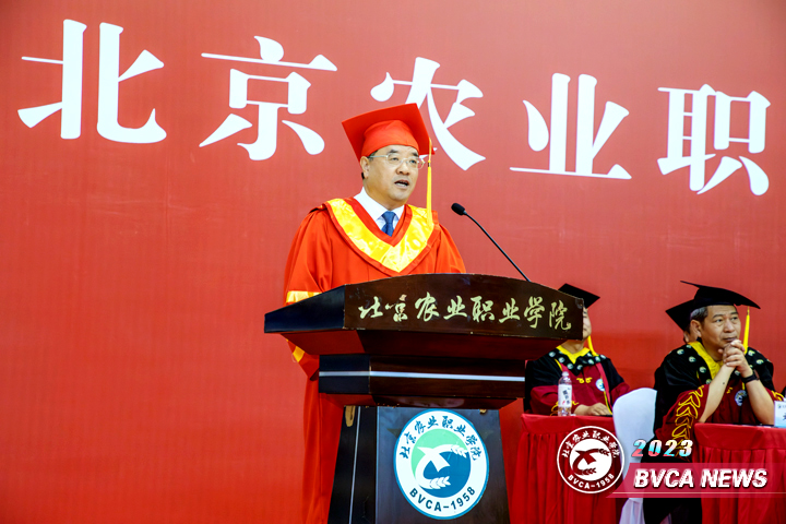 范雙喜同志發表致辭。他回顧了3年來,農職學子在疫情防控一線、志愿服務之路、技能大賽賽場和服務“三農”征程中的點點滴滴,指出,農職學子揮灑汗水、激揚青春、擔當奉獻、追求卓越,以良好風貌和驕人成績繪就了農職院最靚麗的風景。他對同學們提出三點希望:一是厚植家國情懷。指出,一代代農職人把家國情懷根植于心,把強國之夢踐之于行,繪就了農職人興農強農、熱血報國的精神譜系。二是提升能力本領。指出,農職學子要緊跟現代科技發展步伐,樹立新思維、新理念,掌握新技術、新技能,用科技點亮人生,用科技創新未來。三要工作生活雙贏。指出,希望同學們在今后的工作和生活中,無論面對成績與挫折、順境與逆境、成功與失敗,都能保持堅韌的意志品質和昂揚的精神狀態,攻堅克難,奮力實現人生的既定目標。
