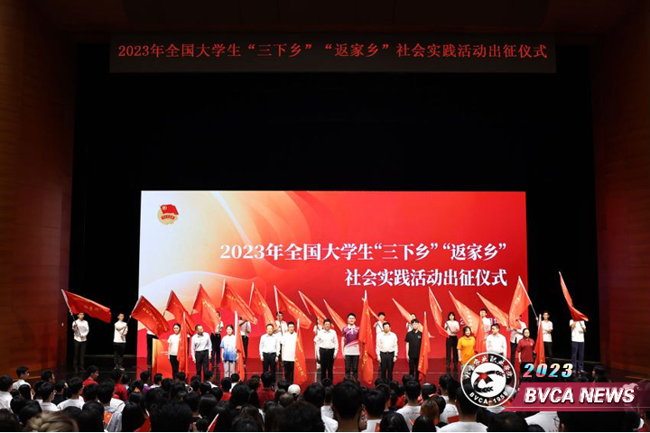 為深入學(xué)習(xí)貫徹習(xí)近平新時(shí)代中國特色社會(huì)主義思想,全面貫徹落實(shí)黨的二十大精神,落實(shí)團(tuán)十九大工作部署和《共青團(tuán)中央全國學(xué)聯(lián)關(guān)于增強(qiáng)新時(shí)代大學(xué)生社會(huì)實(shí)踐活動(dòng)實(shí)效深化共青團(tuán)實(shí)踐育人工作的意見》,組織引領(lǐng)青年大學(xué)生深入鄉(xiāng)村基層一線,廣泛動(dòng)員青年學(xué)子踴躍投身社會(huì)實(shí)踐活動(dòng),共青團(tuán)中央于7月14日在清華大學(xué)新清華學(xué)堂啟動(dòng)2023年全國大學(xué)生“三下鄉(xiāng)”“返家鄉(xiāng)”社會(huì)實(shí)踐活動(dòng),團(tuán)中央書記處第一書記阿東等領(lǐng)導(dǎo)出席出征儀式并講話。我院學(xué)生代表參加出征儀式并上臺(tái)接受授旗,優(yōu)秀實(shí)踐團(tuán)受邀在新時(shí)代大學(xué)生社會(huì)實(shí)踐成果交流展環(huán)節(jié)進(jìn)行展示。