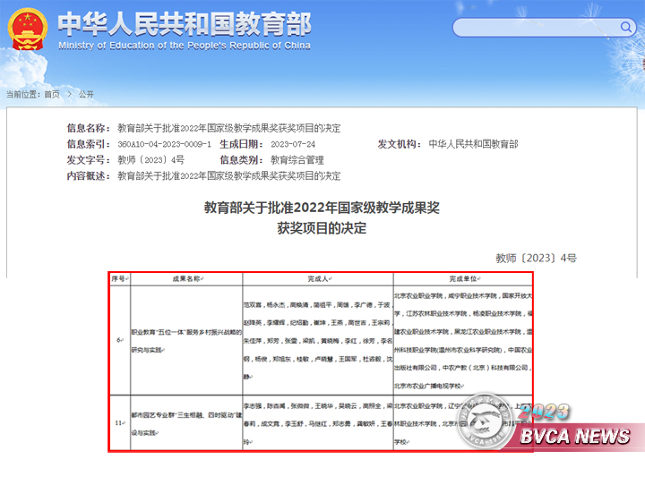 近日,《教育部關于批準2022年國家級教學成果獎獲獎項目的決定》發布。我院主持的《職業教育“五位一體”服務鄉村振興戰略的研究與實踐》和《都市園藝專業群“三生相融、四時驅動”建設與實踐》2項教學成果喜獲國家級教學成果獎二等獎。