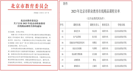 8月10日,北京市教育委員會發布《北京市教委關于公布2023年北京市職業教育在線精品課程名單的通知》,學院申報的“插花藝術”“農產品營銷”等7門課程全部通過網絡評審,經北京市教育委員會專家綜合評議,被確定為“2023年北京市職業教育在線精品課”,也是通過評審課程最多的院校之一,取得了歷史最好成績。至此,學院已有16門課程成為市級在線精品課。