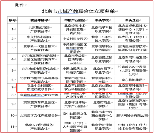 “農業中關村園區市域產教聯合體”以平谷國家農業科技園區為依托,北京嘉華種豬育種有限公司為核心,旨在以教促產、以產助教。此次北京市共計確定11個市域產教聯合體,是北京市教育委員會、北京市發展和改革委員會落實《教育部辦公廳關于開展市域產教聯合體建設的通知》(教職成廳函〔2023〕15號)的具體舉措。學院將以聯合體建設為契機,持續深化產教融合、產學合作,不斷提升辦學水平,全力服務北京市農業中關村建設和北京“四個中心”建設。