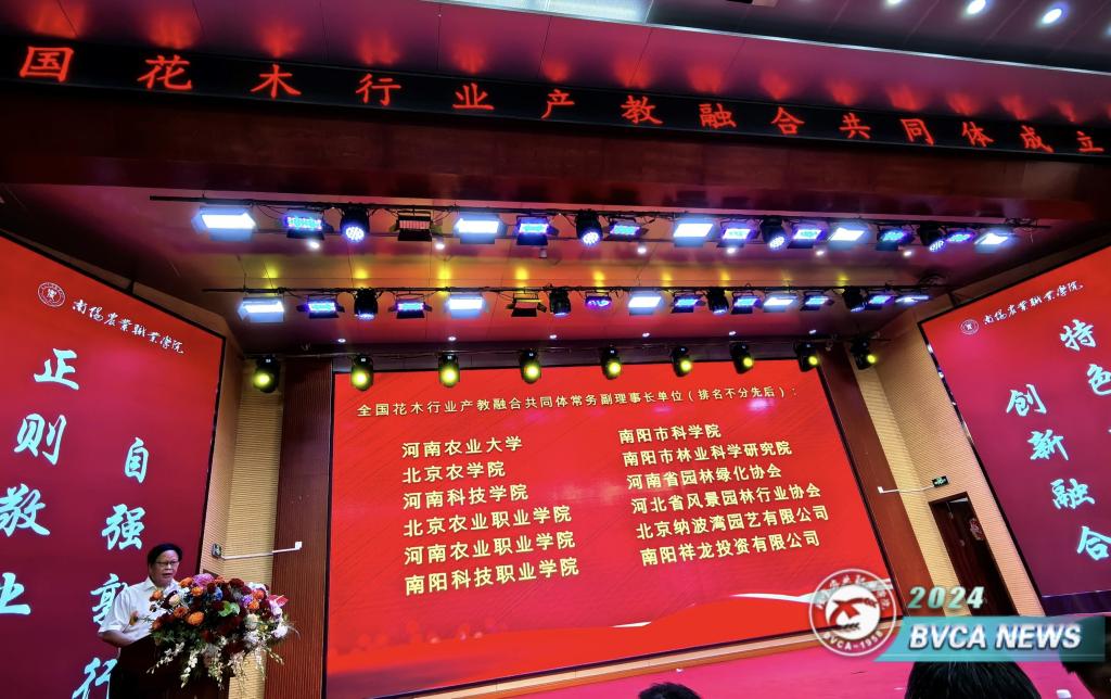 近日,全國花木行業(yè)產(chǎn)教融合共同體成立大會在南陽農(nóng)業(yè)職業(yè)學(xué)院雪楓校區(qū)舉行。我校以常務(wù)副理事長單位身份加入該共同體,學(xué)校黨委常委、紀(jì)委書記、監(jiān)察專員魯雷,園藝園林學(xué)院副院長吳曉云代表學(xué)校參加此次成立大會暨世界月季南陽論壇、2024第二屆世界月季大會開幕式。
